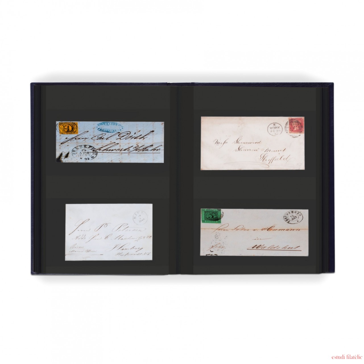 Leuchtturm 356228 Álbum para 128 cartas y tarjetas postales, 64 páginas negras, tapa acolchada, azul