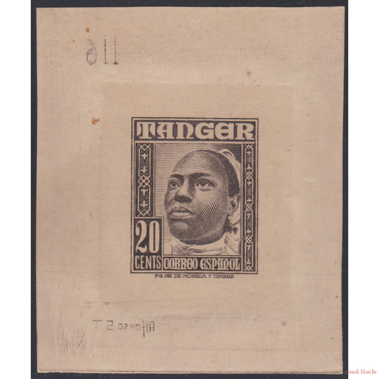 20 cts . Prueba en negro de grandes márgenes