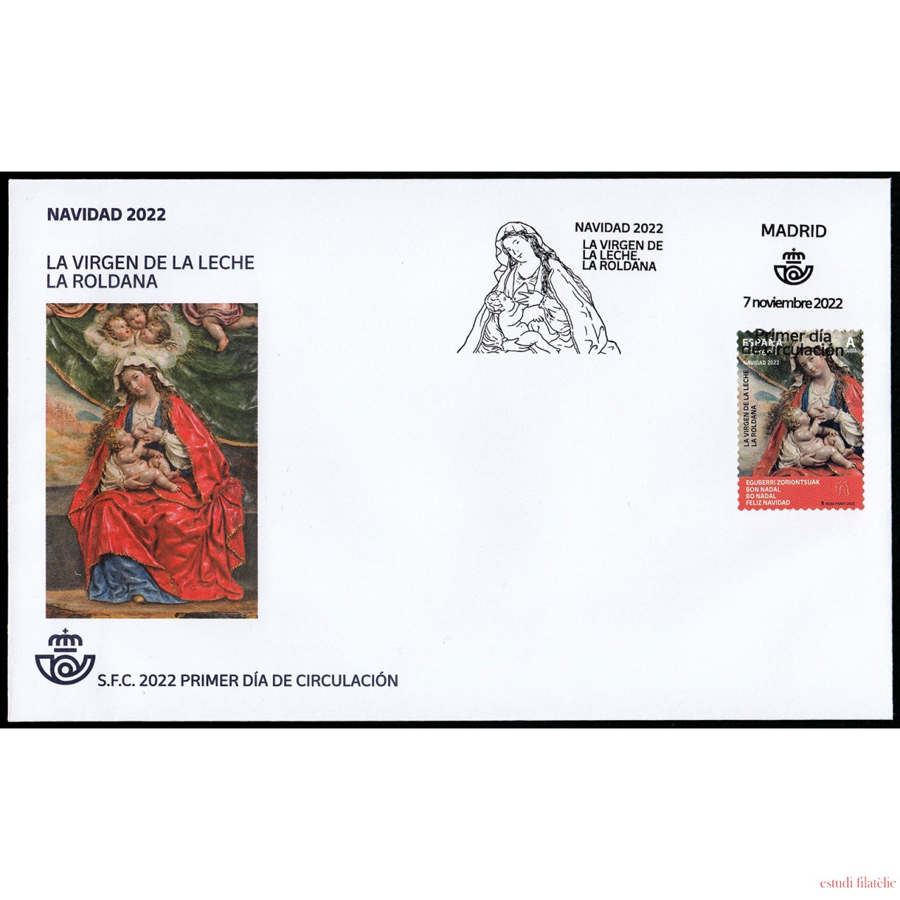 España Spain 5622 2022 La Virgen de la Leche La Roldana SPD Sobre Primer Día Tarifa A