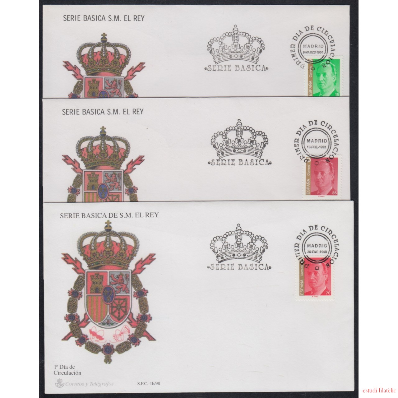 España Spain Nº3526/28 Año 1998 SM Don Juan Carlos I, SPD FDC SOBRE PRIMER DIA,foto estándar