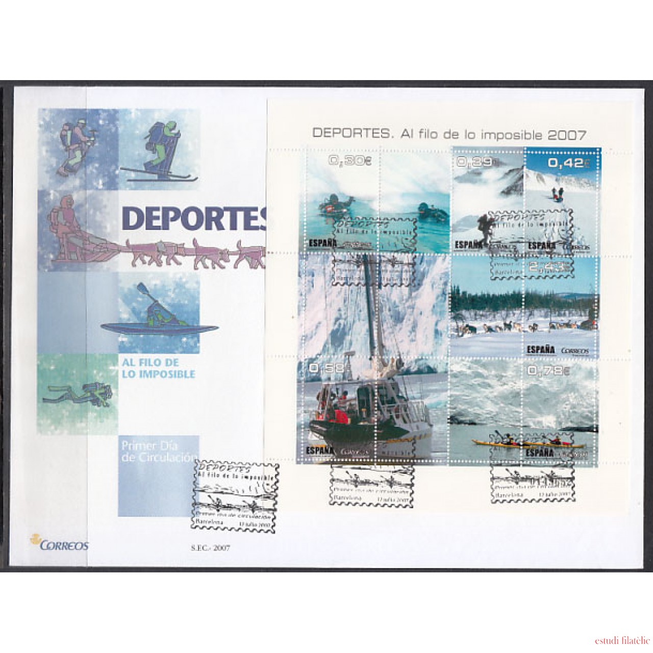 España Spain 4345 2007 Deportes Al filo de lo Imposible SPD Sobre Primer Día