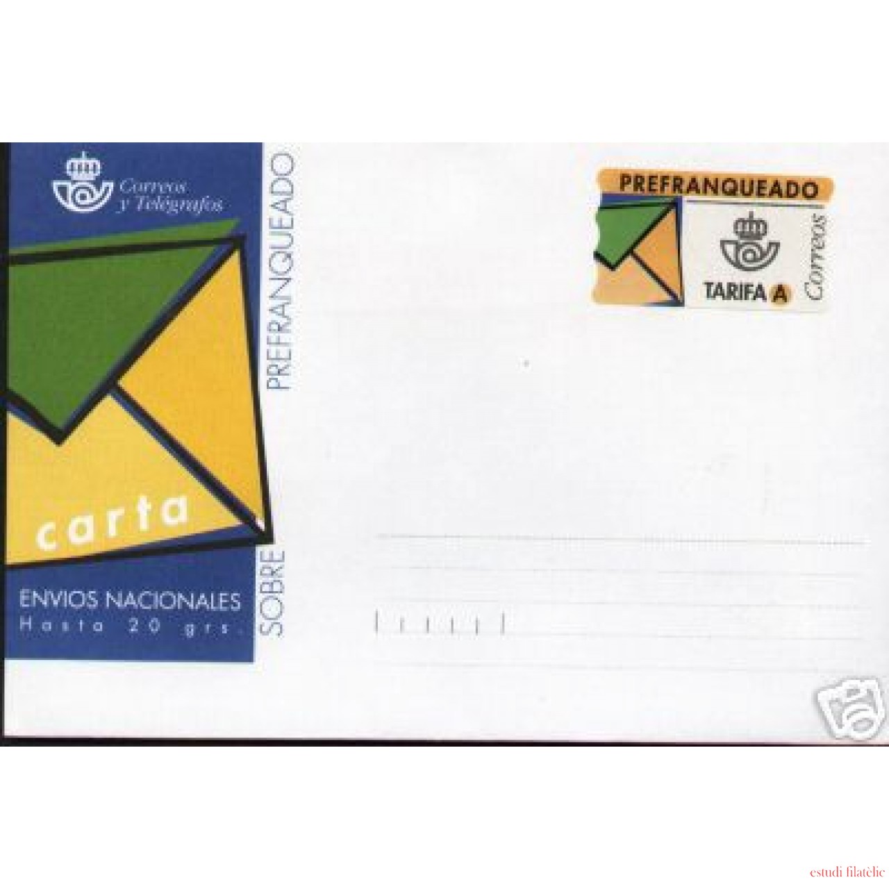 Sobre prefranqueado con etiqueta Tarifa A Nº 3 Año 1999