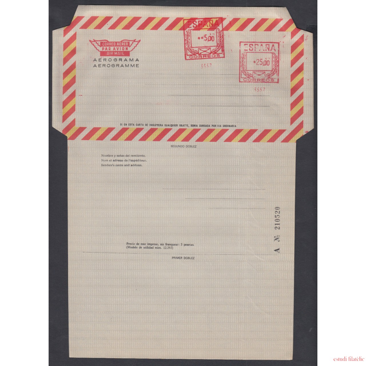 España Aerograma 149 1981 Bicolor Doble franqueo mecánico previamente impreso