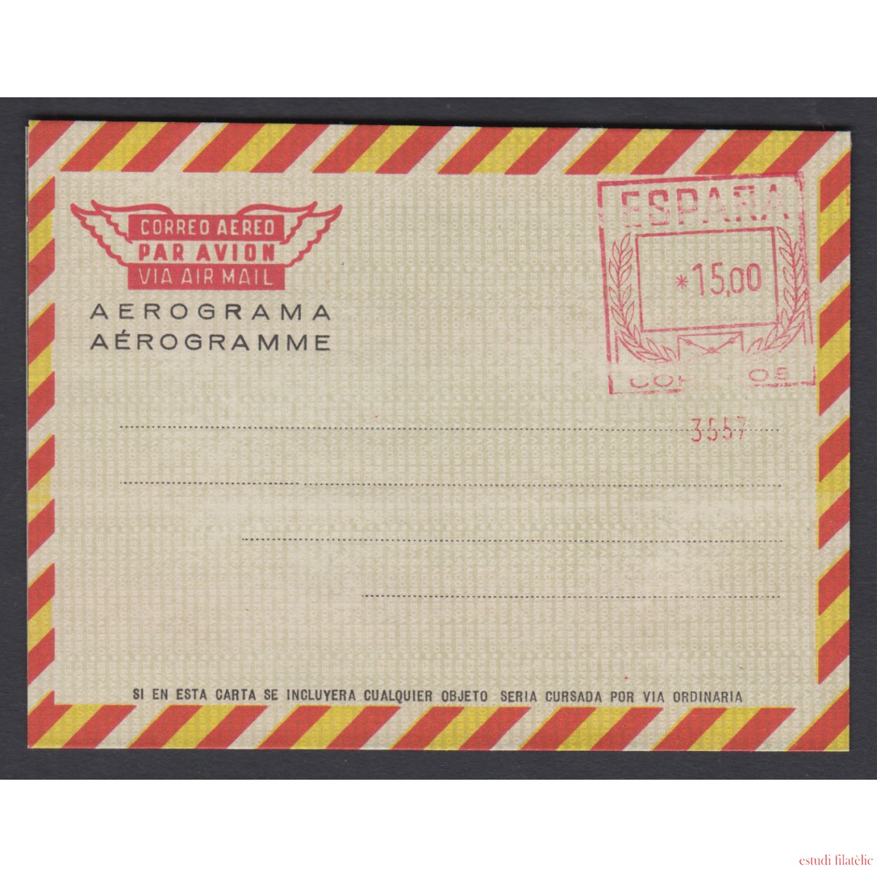 España Aerograma 115 1974/75 Bicolor Franqueo mecánico previamente impreso