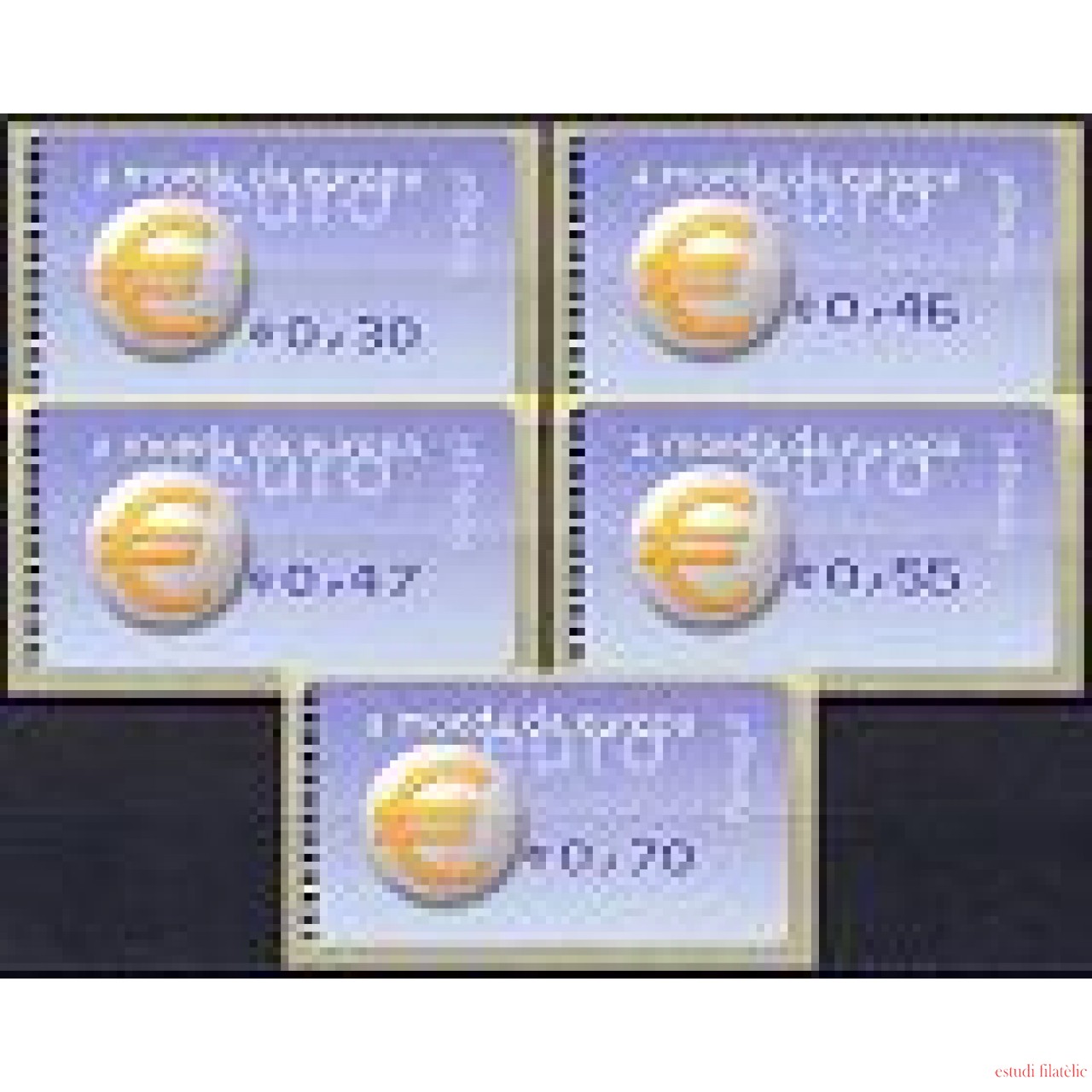 Portugal Atms 2002 Amiel Euro, moneda europea 5v. COMA EN VEZ DE PUNTO Números más de palo D-24b