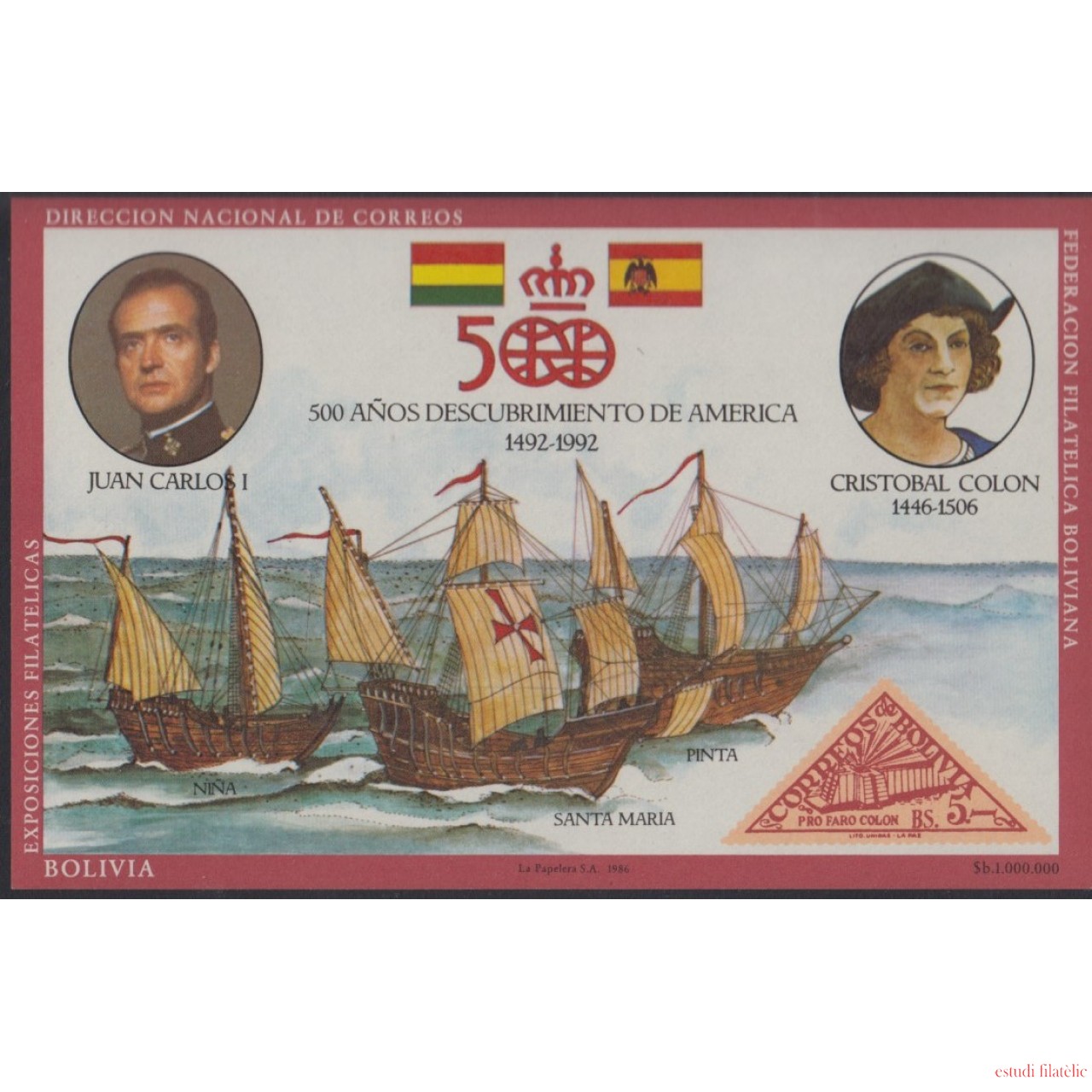 Bolivia HBM-153 V Centenario del descubrimiento de América Colón MNH