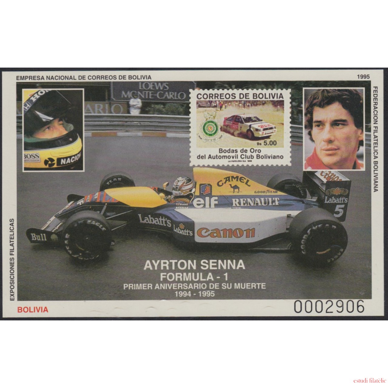 Bolivia HBM-219 Ayrton Senna Fórmula 1 MNH
