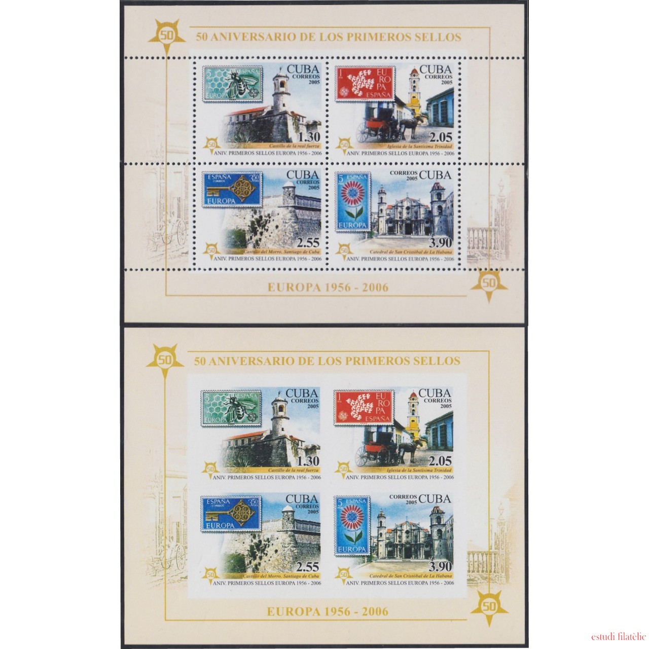 Cuba HB 204 2005 500 Años de la primera Emisión de los sellos del Tema Europa. Dentado y sin dentar 2 Hojitas Bloque MNH
