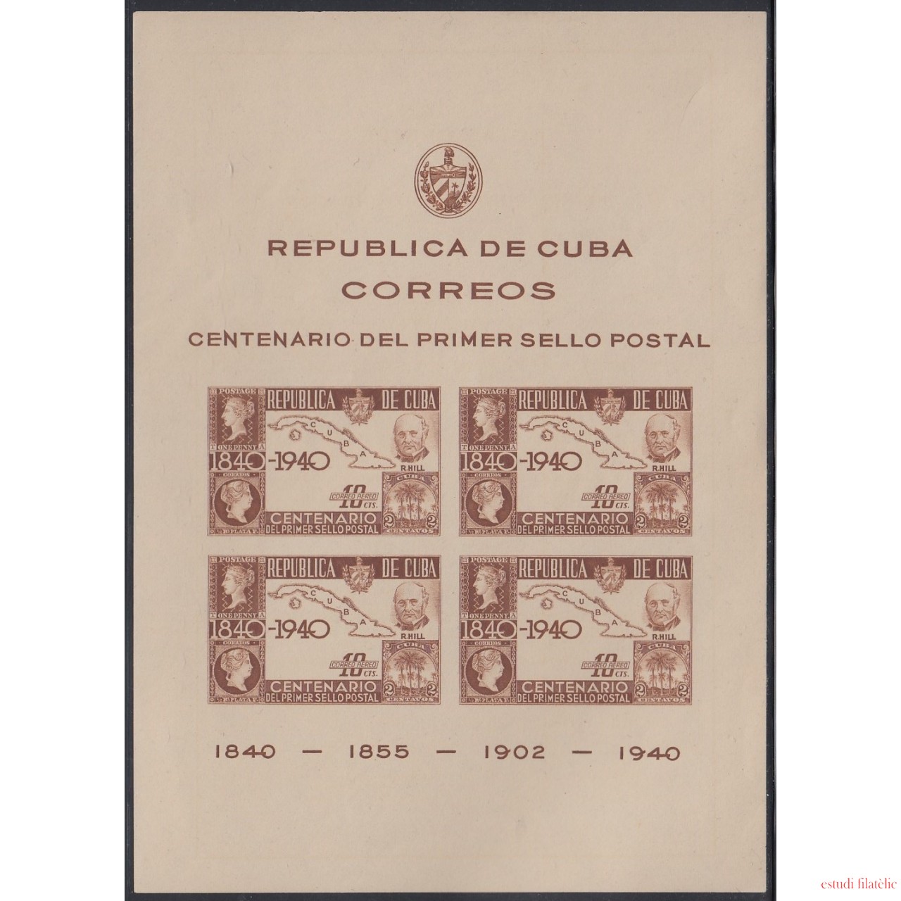 Cuba HB 2 1940 Centenario del primer sello oficial MNH
