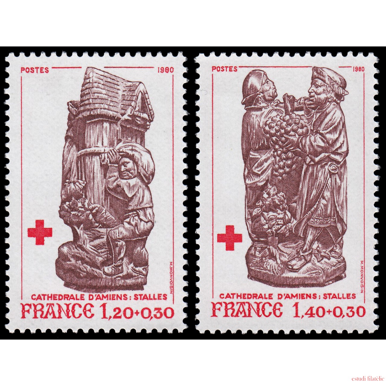 France Francia 2116/17 1980 Estatuas de la catedral de Amiens Sorteo de la Cruz Roja MNH