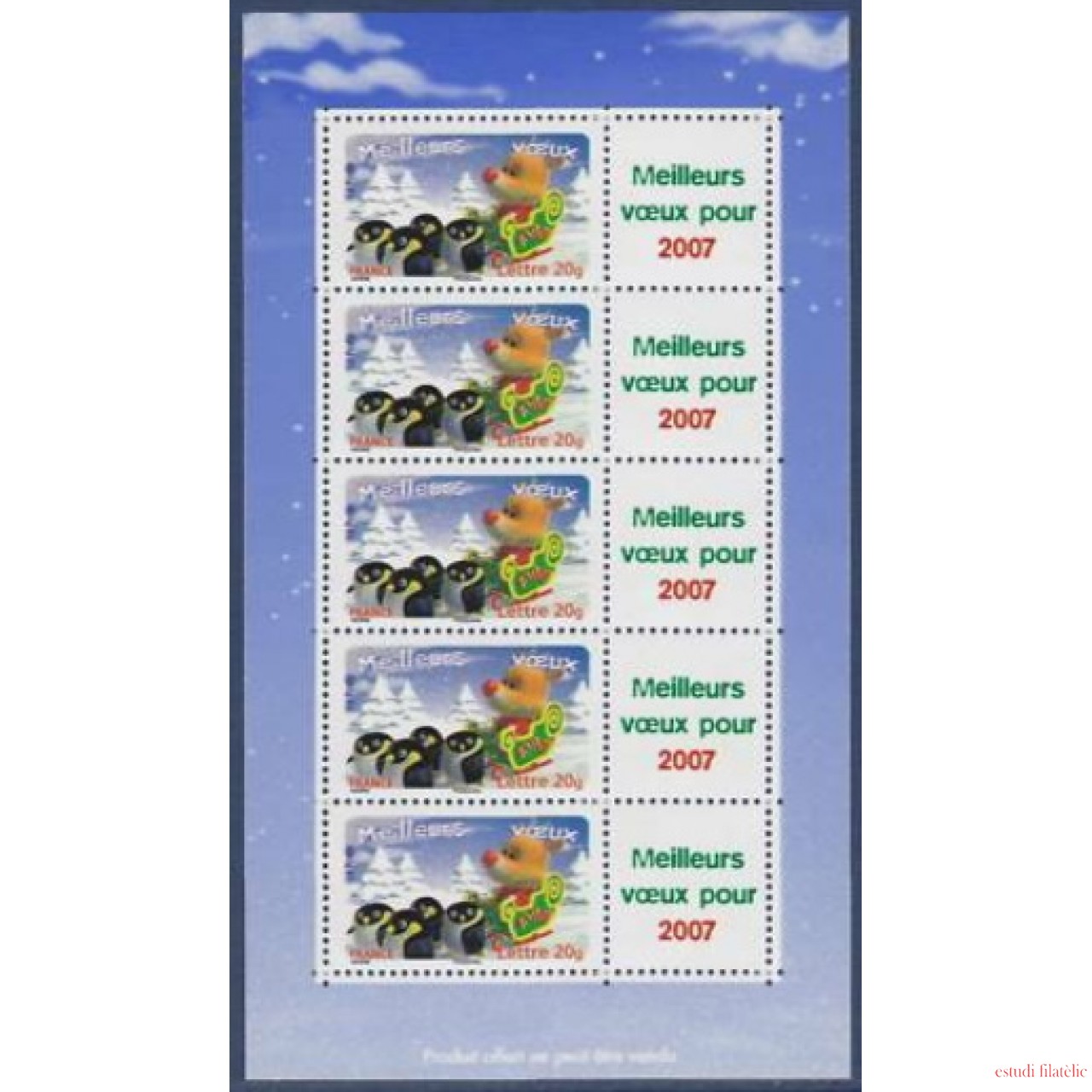 France Francia Personalizados 3986Aa - 2006 Feliz 2007 Reno, pingüinos Hojita 5 sellos nº 3986 con viñeta Lujo