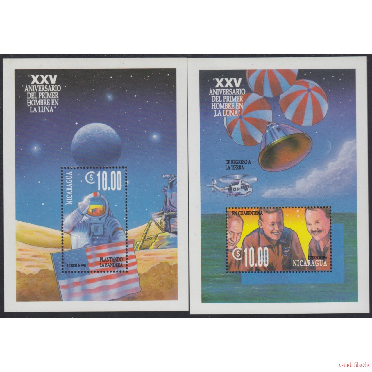 Nicaragua HB 232/33 1994 25º Aniversario del 1er hombre en la Luna Astronauta Bandera de EEUU