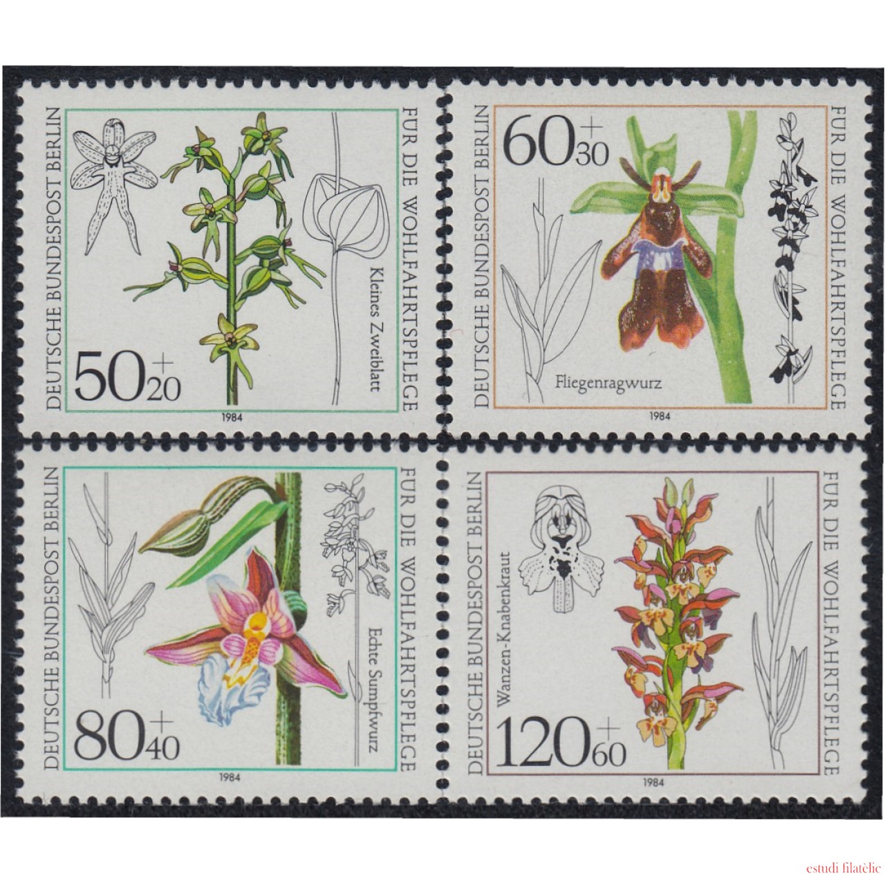 Alemania Berlín 685/88 1984 Sorteo benéfico orquídeas flores flowers MNH