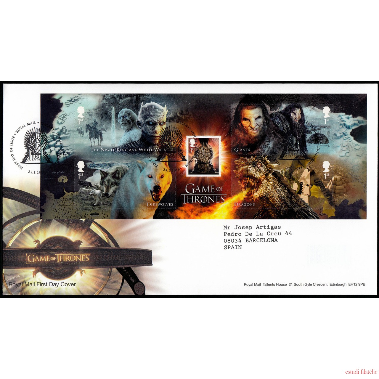 Gran Bretaña 4554/58 F4554 2018 SPD FDC Serie Juego de Tronos Autoadhesivos Sobre primer día Tallent House