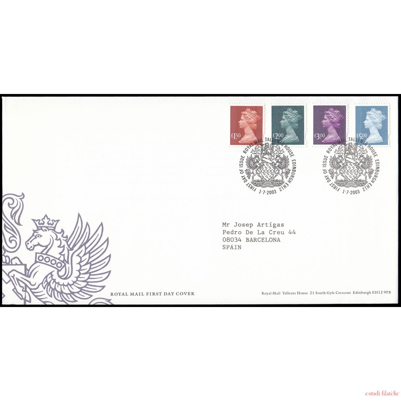 Gran Bretaña 2458/61 2003 SPD FDC Serie Reina Isabel II Sobre primer día Tallents House