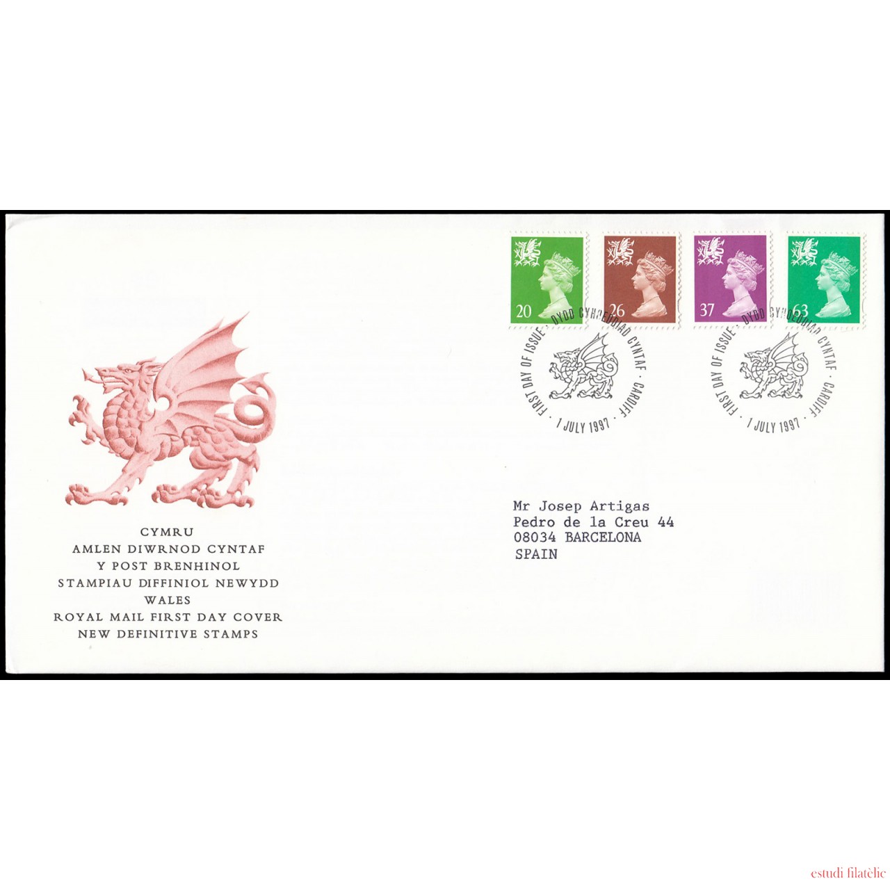Gran Bretaña 1976/87 (de la serie) 1997 SPD FDC Serie Reina Isabel II Sobre primer día Cardiff