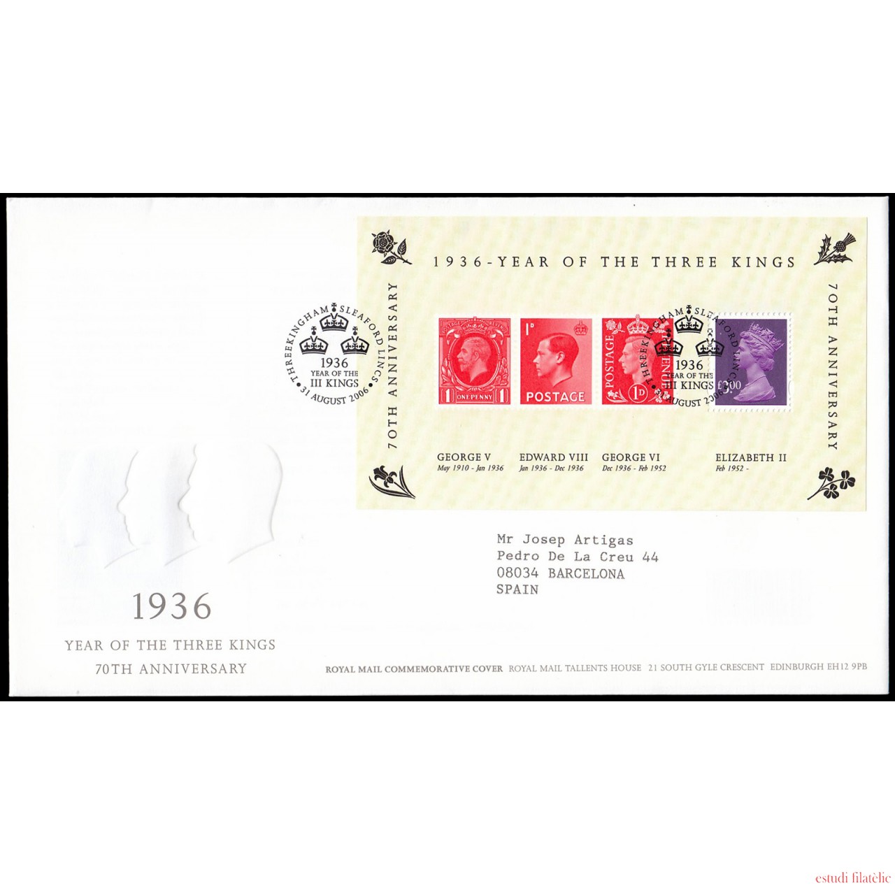 Gran Bretaña HB 39 2006 SPD FDC 1936 año de los tres Reyes Sobre primer día ThreeKingham