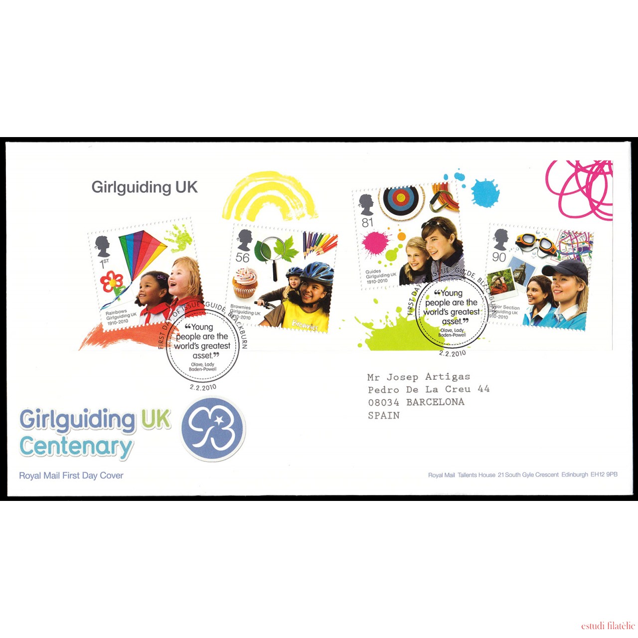 Gran Bretaña 3267/70 2010 SPD FDC Movimiento Scout Centenario del Guidismo, Blackburn Sobre primer día