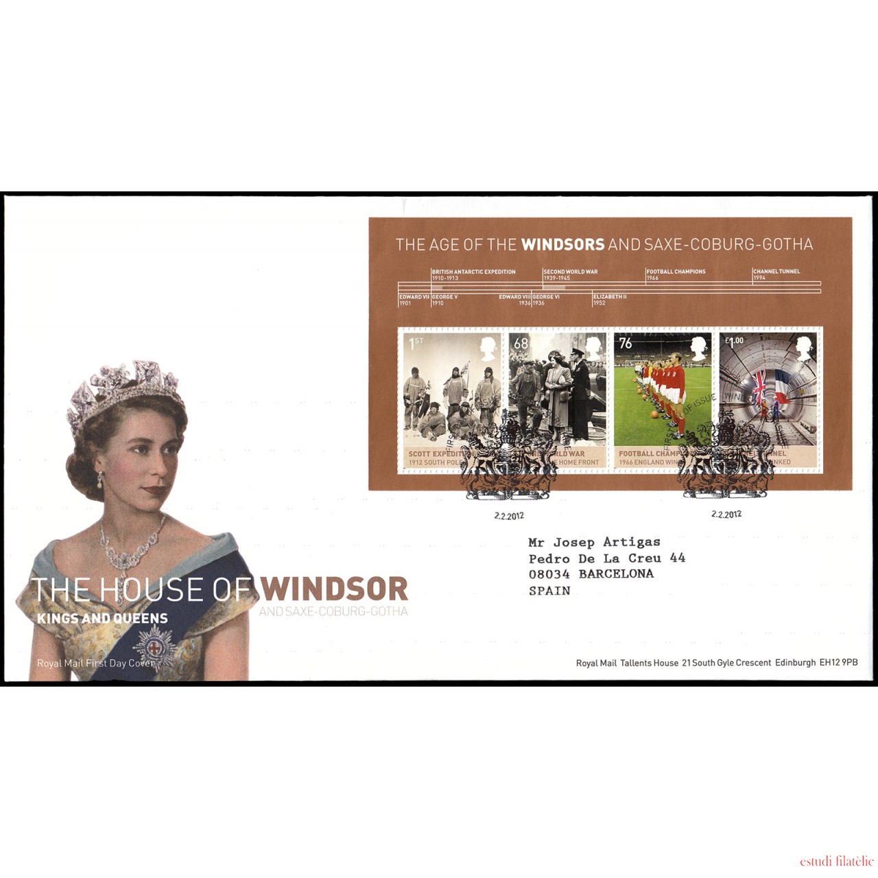 Gran Bretaña HB 91 2012 SPD FDC Reyes y Reinas Británicos Windsor Sobre primer día