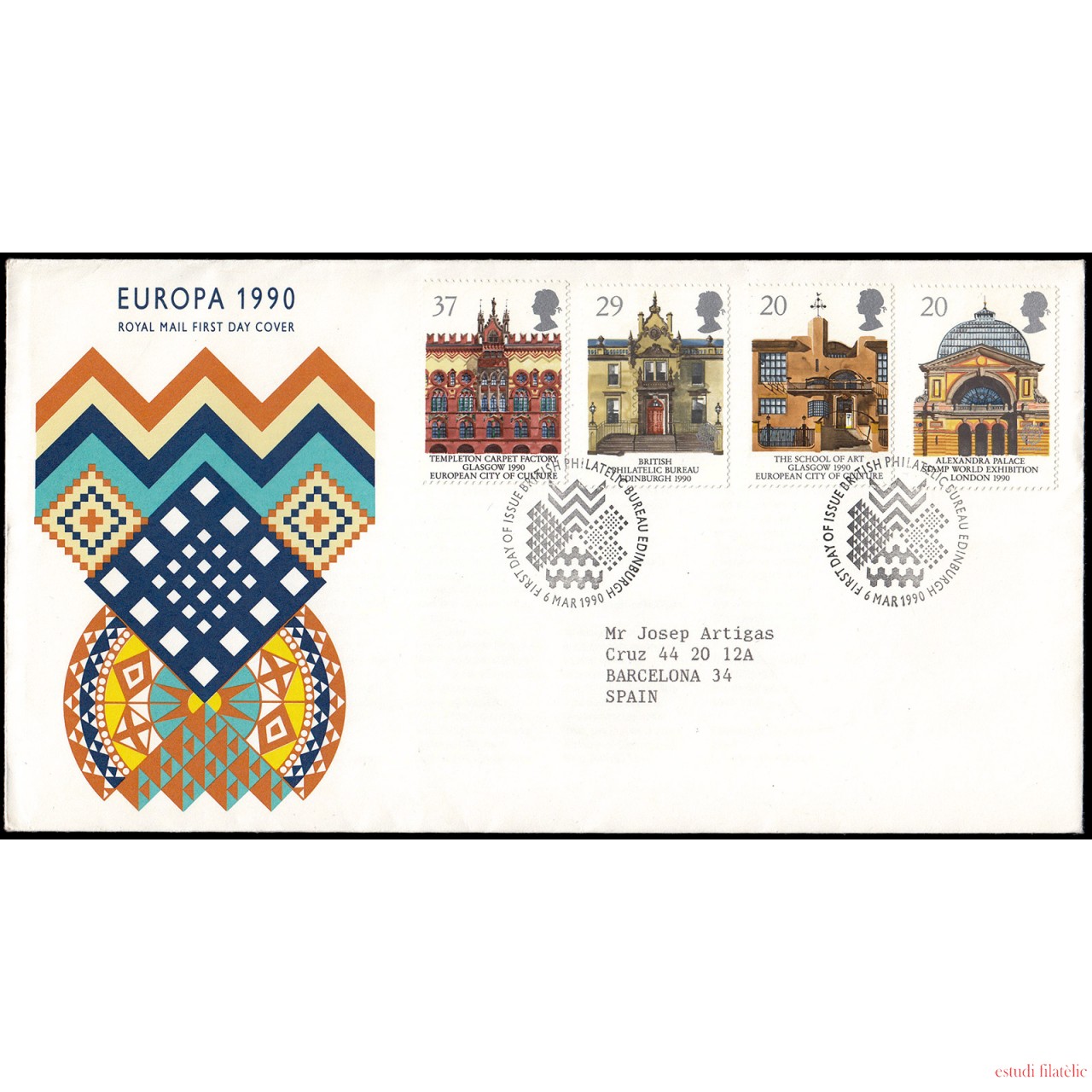 Gran Bretaña 1455/58 1990 SPD FDC Europa edificios postales de ayer y de hoy Philatelic Bureau Sobre primer día