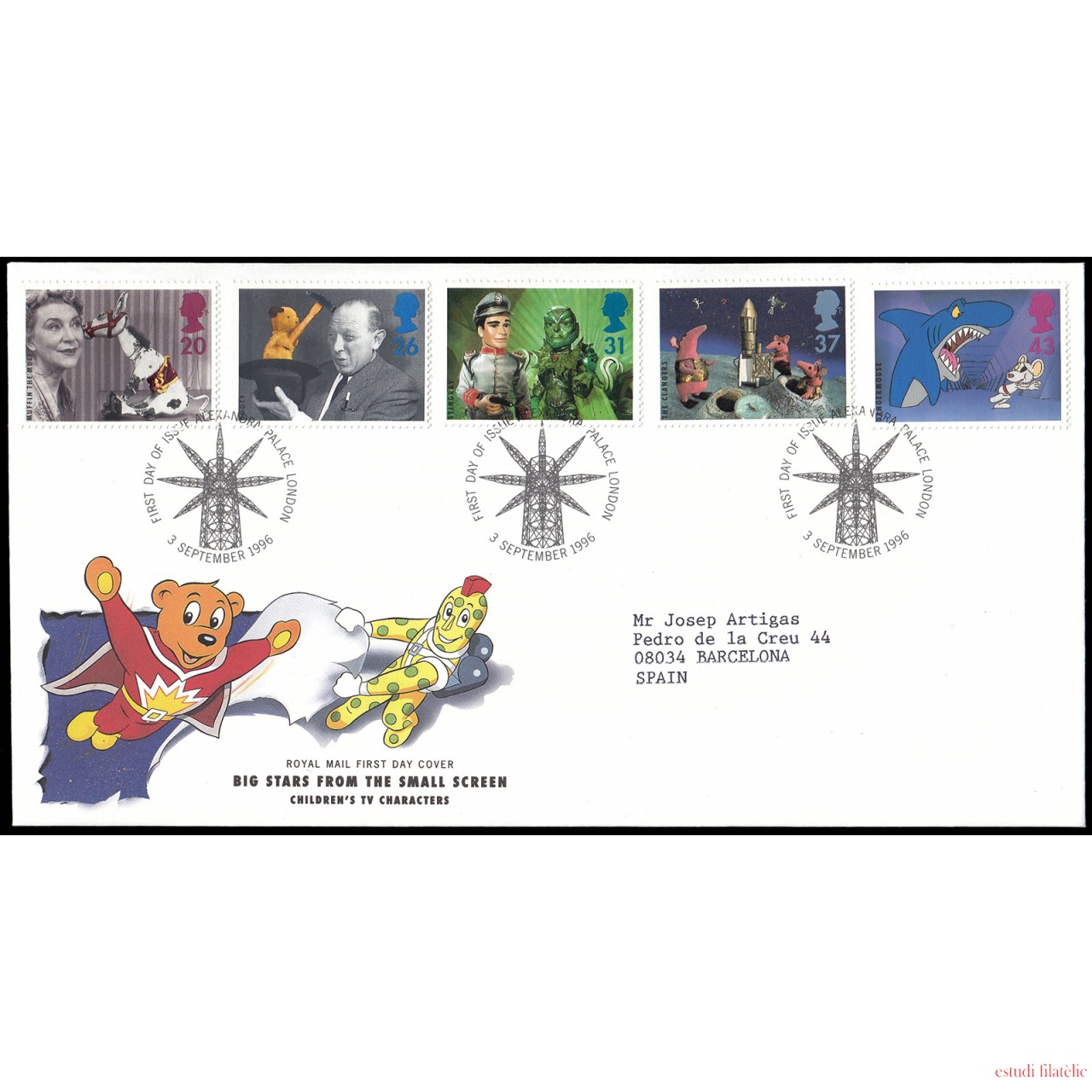 Gran Bretaña 1910/14 1996 SPD FDC 50 años de emisiones infantiles Alexandra Palace Sobre primer día