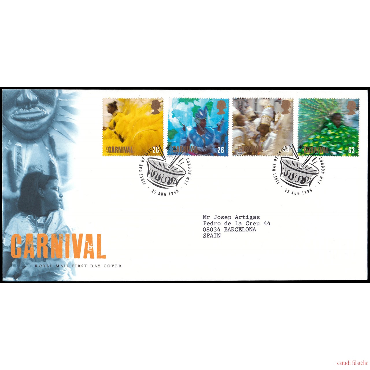 Gran Bretaña 2052/55 1998 SPD FDC Europa Festivales nacionales Carnavales London Sobre primer día