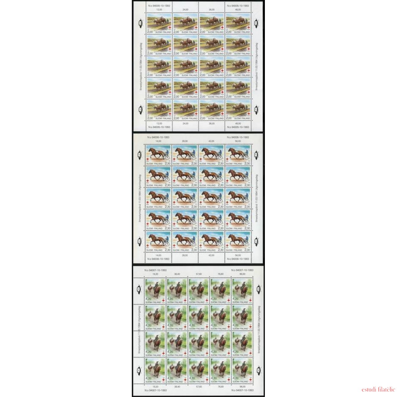• MED  Finlandia Finland  211/13  MHB  1993  Horse caballo MNH