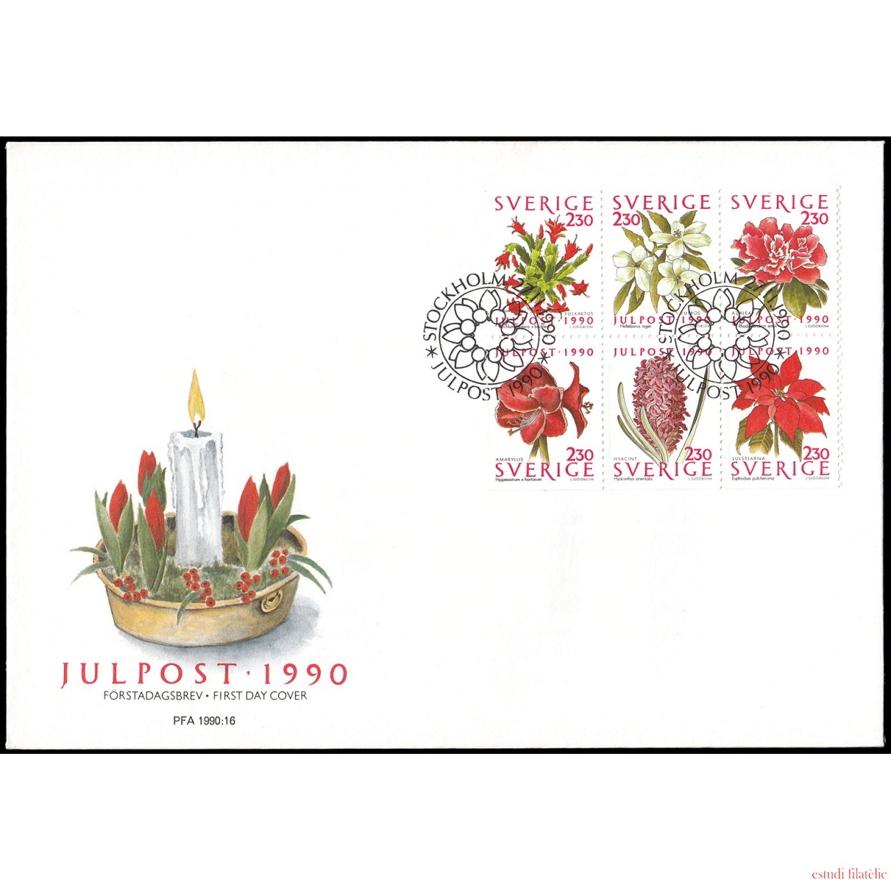 Suecia Sweden SPD FDC 1625/30 1990 Navidad Flores de temporada Rojo y verde Sobre primer día