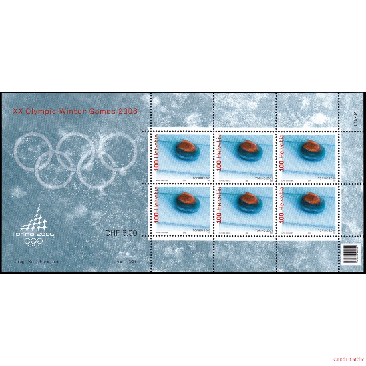 Suiza Switzerland 1875 2005 Juegos olímpicos de invierno 2006 en Turín Curling minihojita MNH