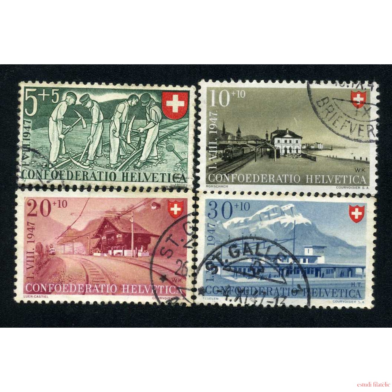 • Suiza Switzerland 437/40 1947 Fiesta nacional A favor de la lucha contra el cáncer Usados