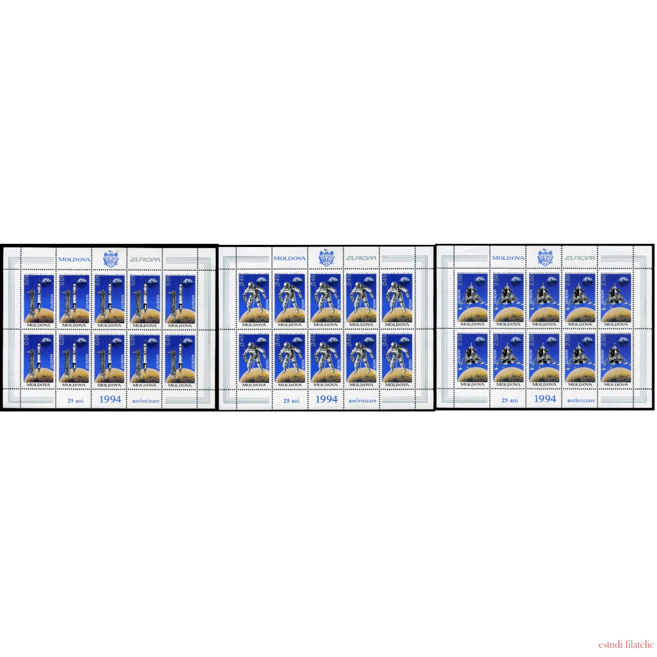 Moldavia - 96/98-MP - 1994 Europa La Europa de los descubrimientos La conquista del espacio Hojita 10 sellos c/u nº 96 + nº 97 + nº 98 Lujo