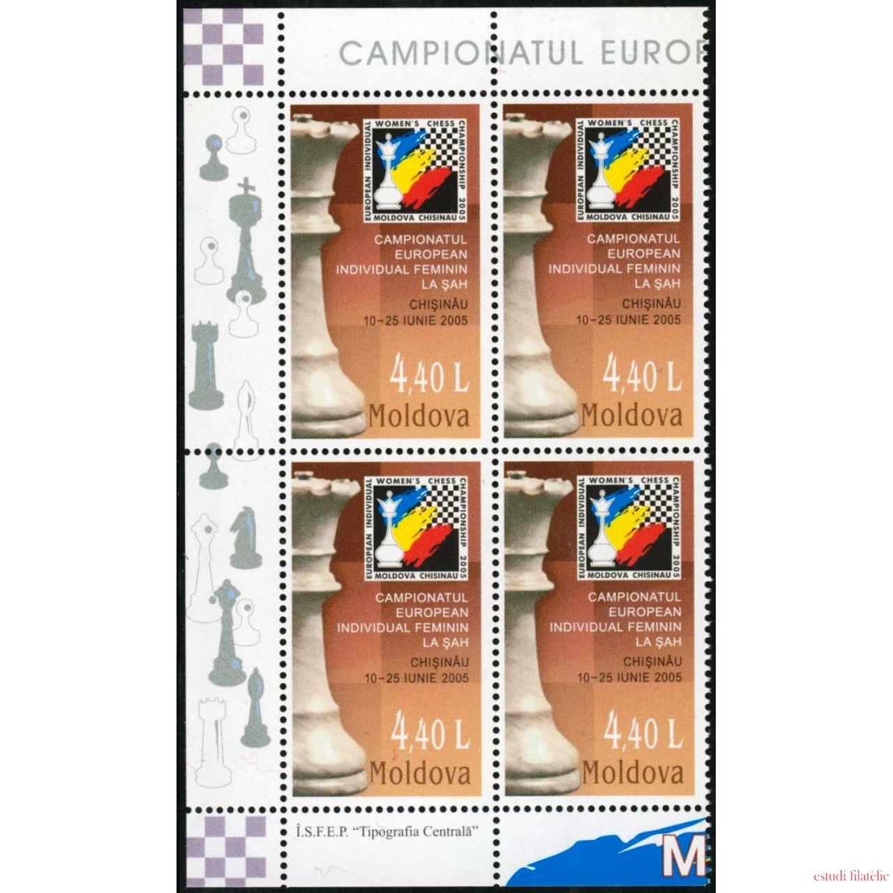 • AJZ1 Moldavia  Nº 446 Bloque 4  2005 Ajedrez MNH