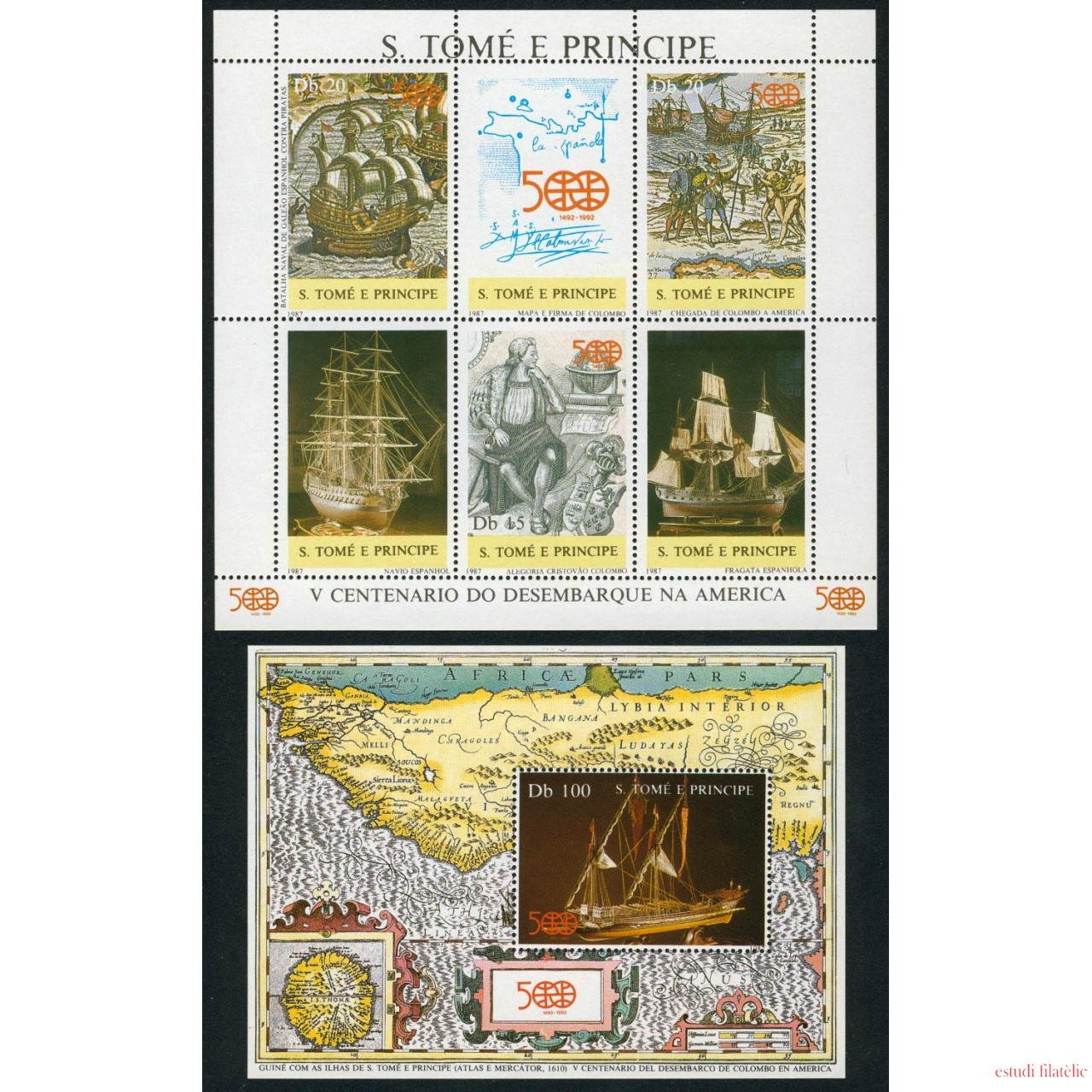COL Santo Tomás y Príncipe Nº 884/86 + HB 52 1987 Colon Columbus MNH