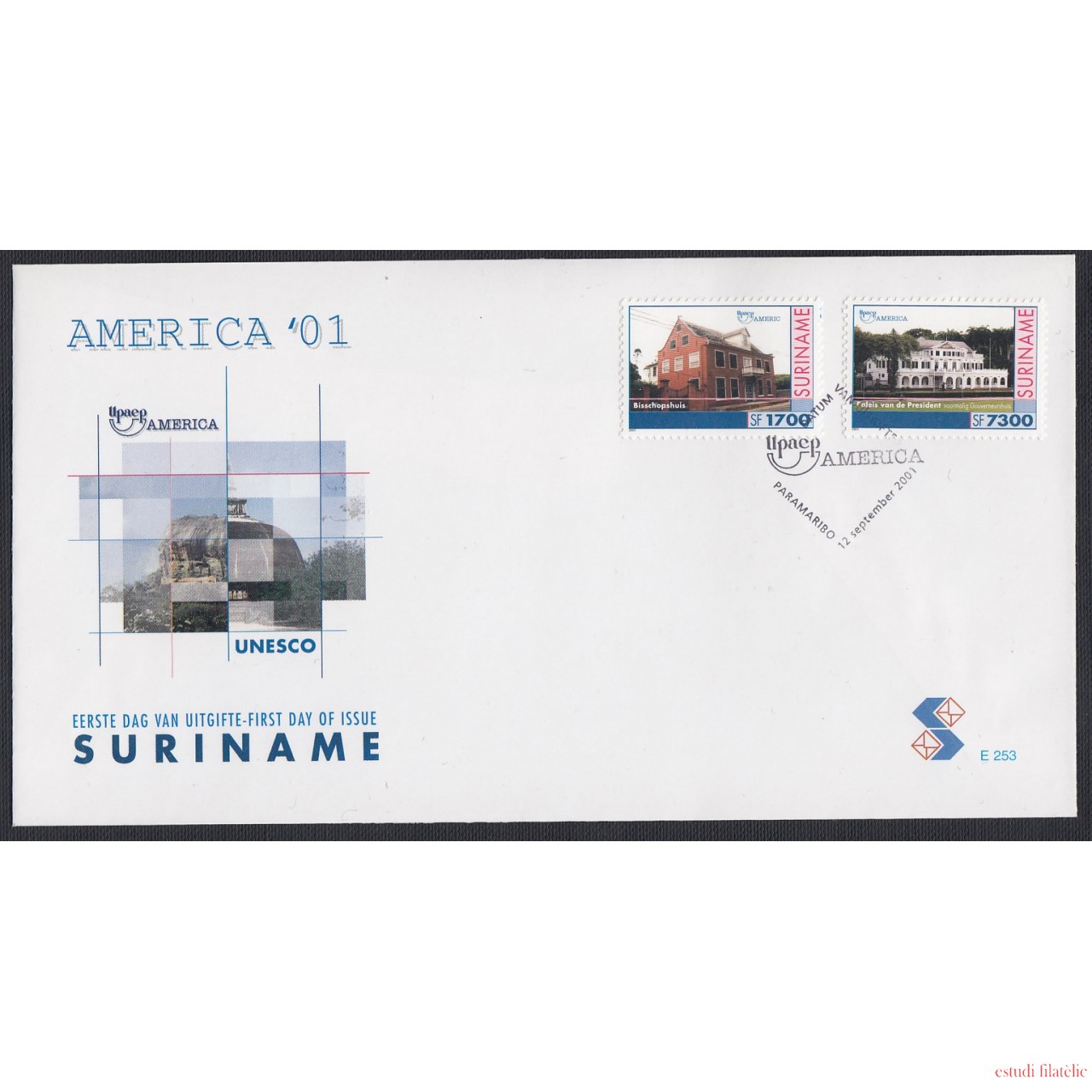 Upaep Suriname 1601/02 2001 Palacio Presidencial SPD FDC Sobre Primer Día
