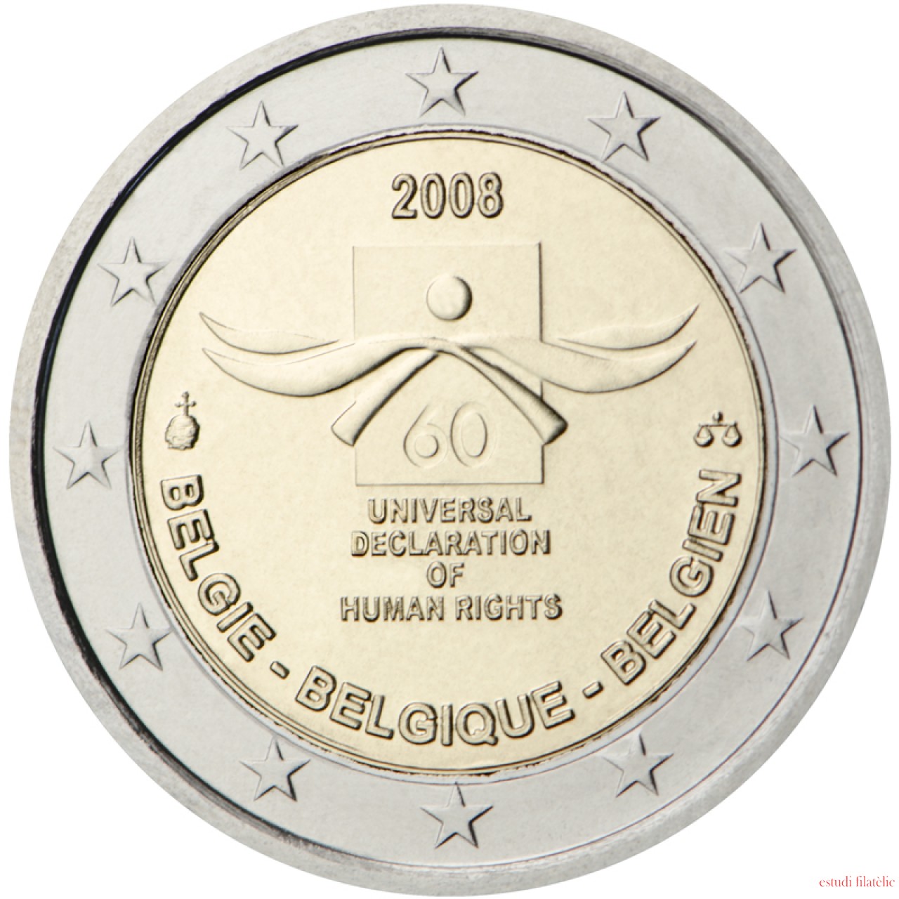 Bélgica 2008 2 € euros conmemorativos Sexagésimo Av. de la Declaración Universal de Derechos Humanos