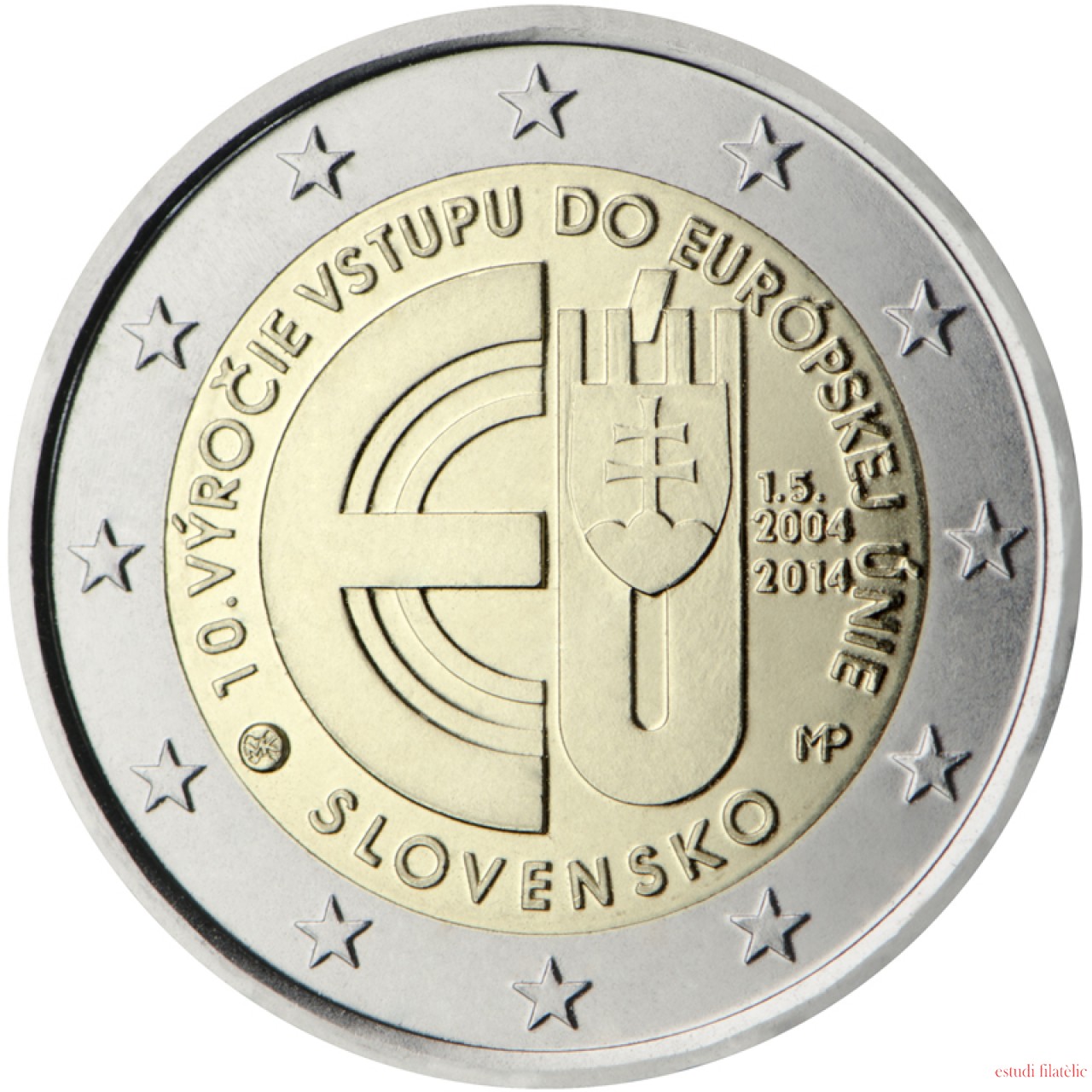 Eslovaquia 2014 2 € euros conmemorativos 10º Av adhesión República Eslovaca Unión Europea