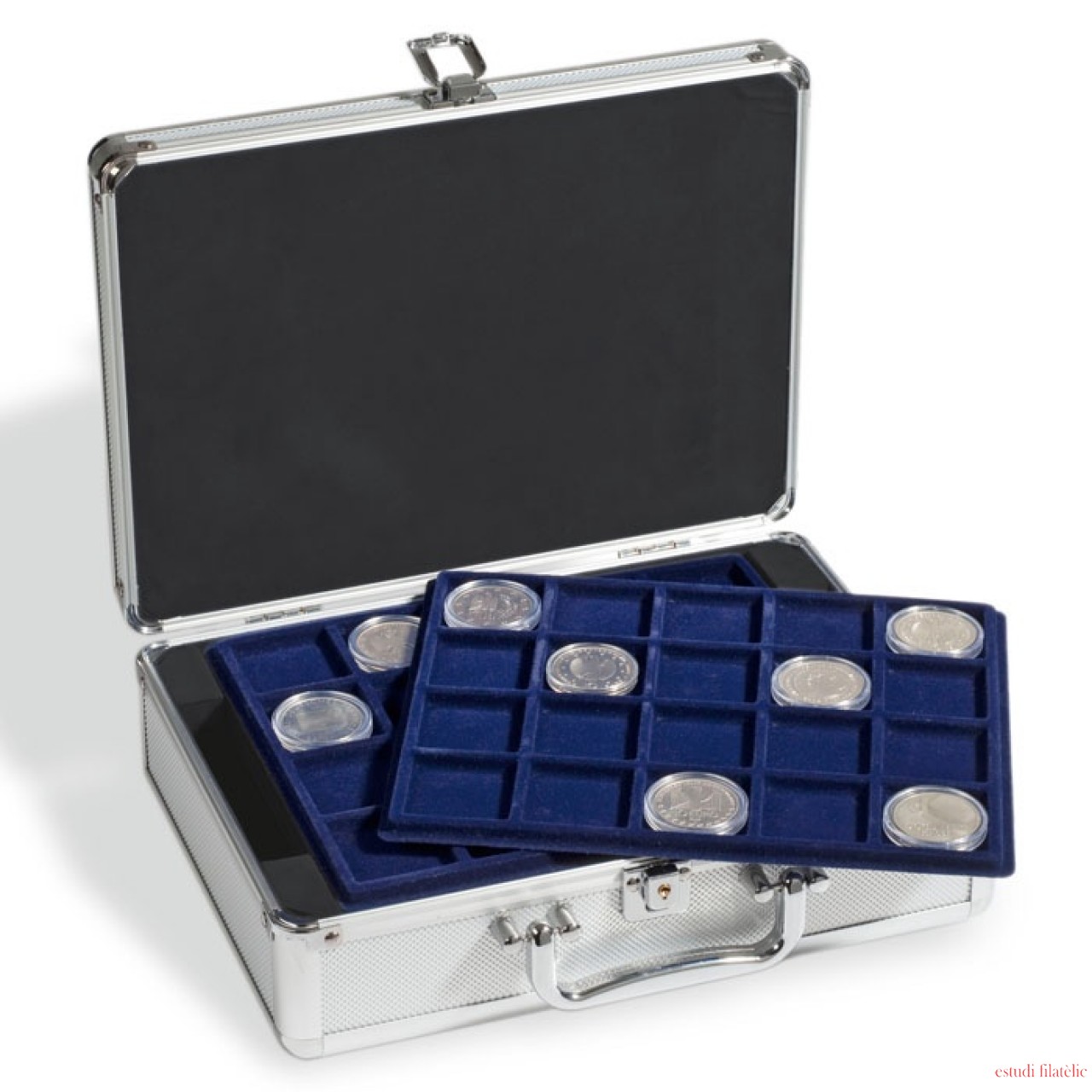 Leuchtturm Maletín para 120 monedas de 10 Euros en cápsulas, incl. 6 bandejas