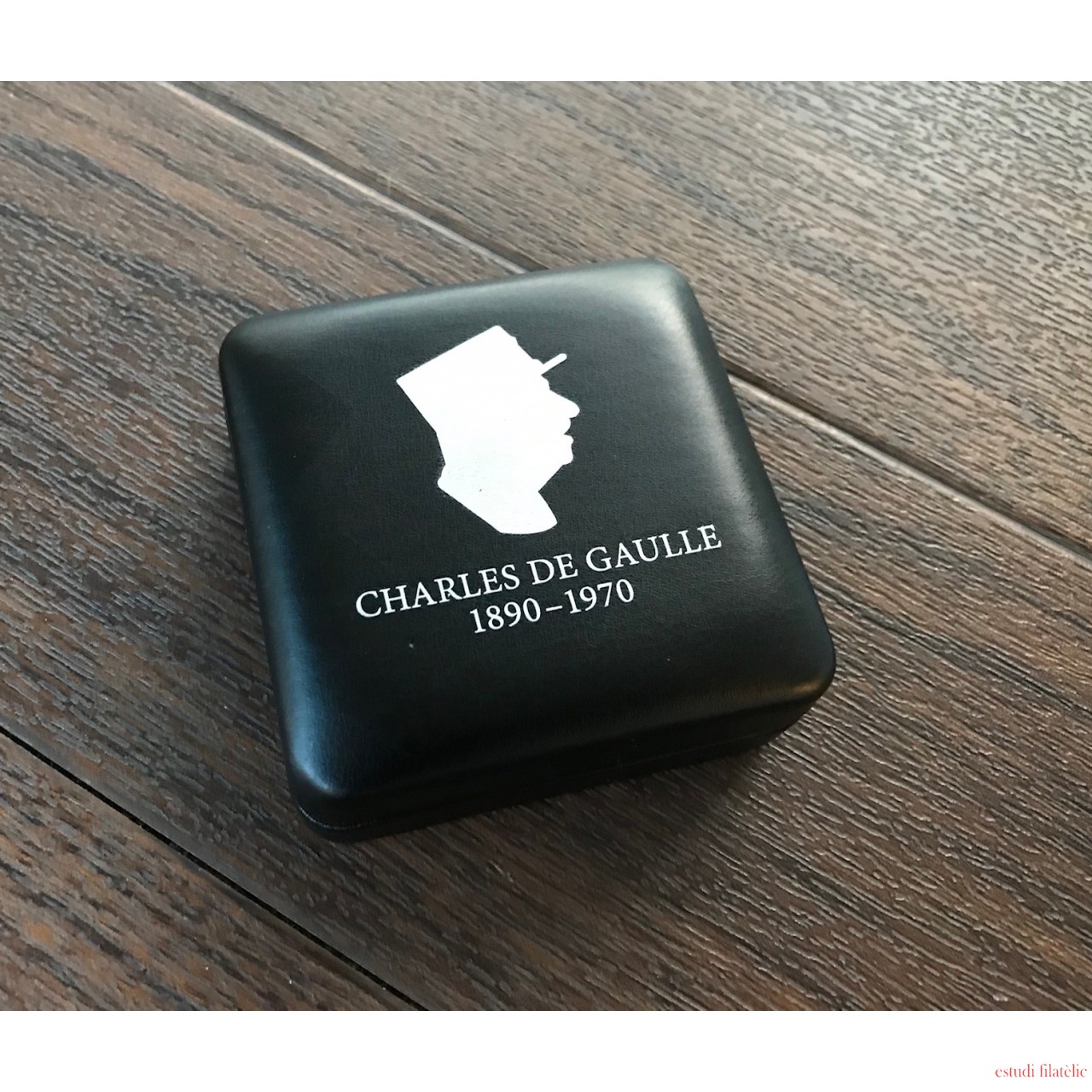 Leuchtturm 363077 Estuche NOBILE para 1 moneda 2 euros “Charles de Gaulle” en cápsula, negro