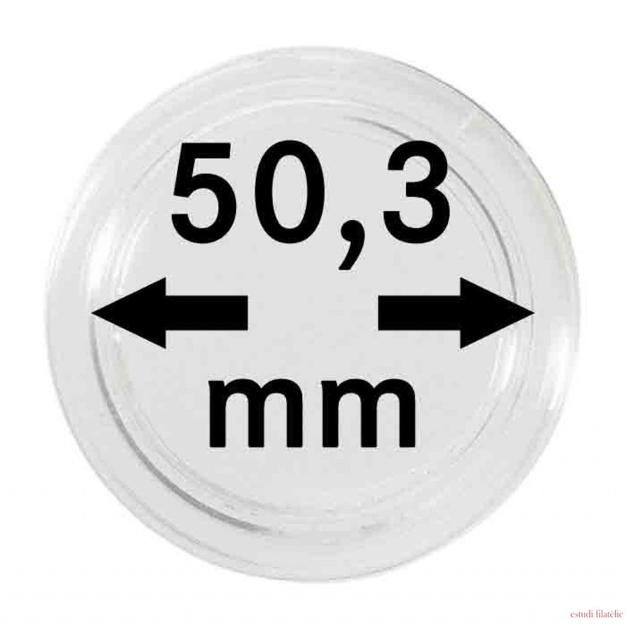 Coleccionar en cápsulas goza cada vez de más aceptación, debido a que el poliestirol, con su superficie extremedamente resistente contra arañazos, garantiza una protección y una visión perfectas de la pieza. Los 45 tamaños diferentes de las cápsulas, con diámetros internos de 14 mm hasta 50 mm, incluyen todas las posibilidades. Las indicaciones de tamaño en el canto y el precio económico son puntos a favor de este sistema de coleccionismo.
