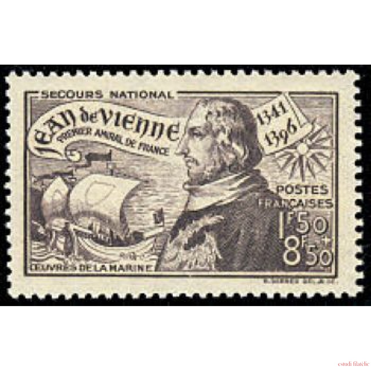 France Francia Nº 544 1942 Afavor de las obras de la marina -6º Centenario del nacimiento del almirante Jean de Vienne- Lujo