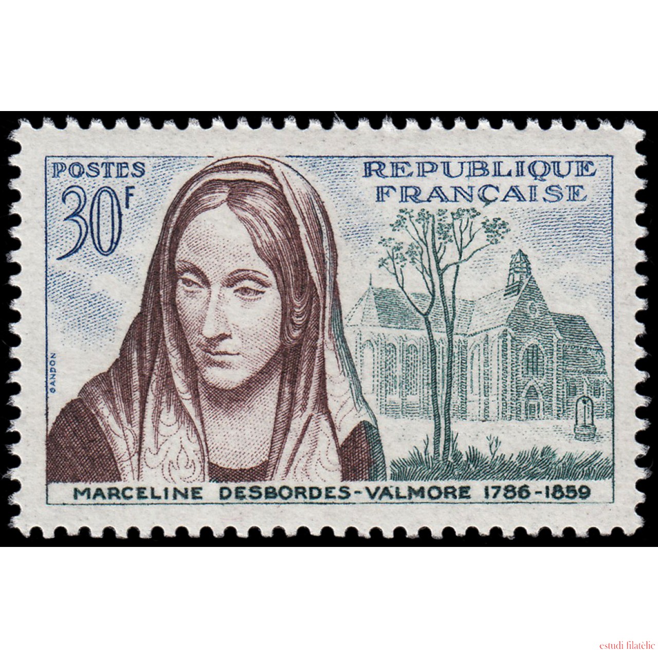 France Francia 1214 1959 Cent. de la muerte de Marceline Desbordes-Balmore MNH