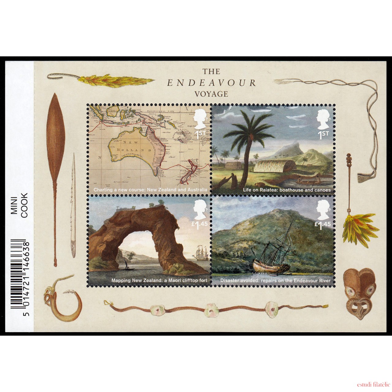 Gran Bretaña 4670/73 F4670 2018 Expediciones del capitán James Cook en el Endeavour Hoja MNH