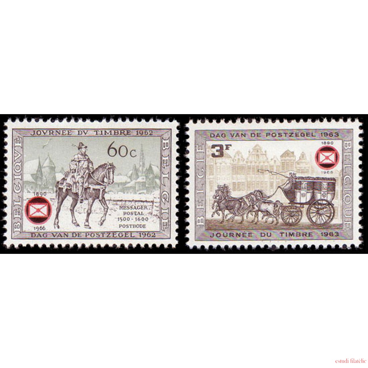 Bélgica Nº 1395/96 1966 75º Aniv. Fed. filatélicas Carruajes Caballos Lujo