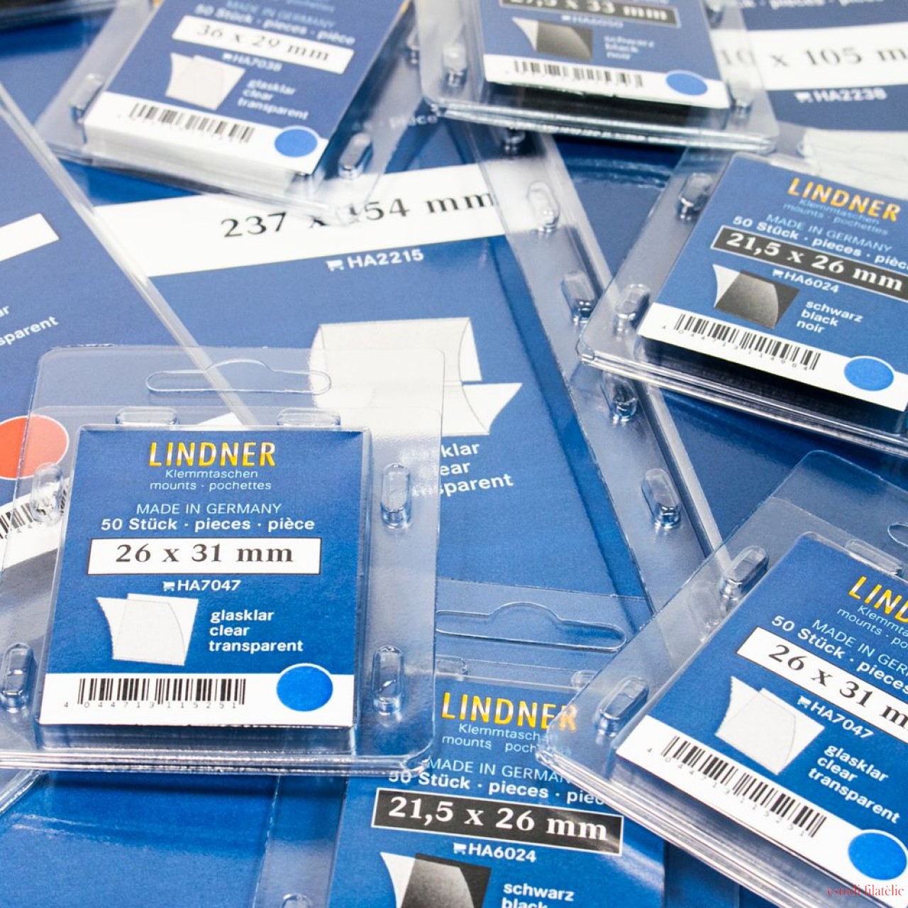 Seguro - fácil - elegante: las monturas hawid son muy populares entre los coleccionistas debido a su excelente calidad. El fácil manejo y los atractivos tipos de grosor hacen de las monturas hawid el número 1: una fina lámina especial (sin suavizante) garantiza una sujeción segura de todos los sellos. La lámina inferior negra, transparente o gris tiene una goma en la parte posterior. Las rayas y los cortes están disponibles en muchos tamaños diferentes. Quien quiera coleccionar sus sellos con prestigio y protegidos en álbumes ilustrados o en blanco, encuentra aquí los accesorios adecuados. Para el uso de las páginas en blanco LINDNER 802-802o, 804-804o y 805 - 805o, el programa Hawid Pocket es muy bueno.