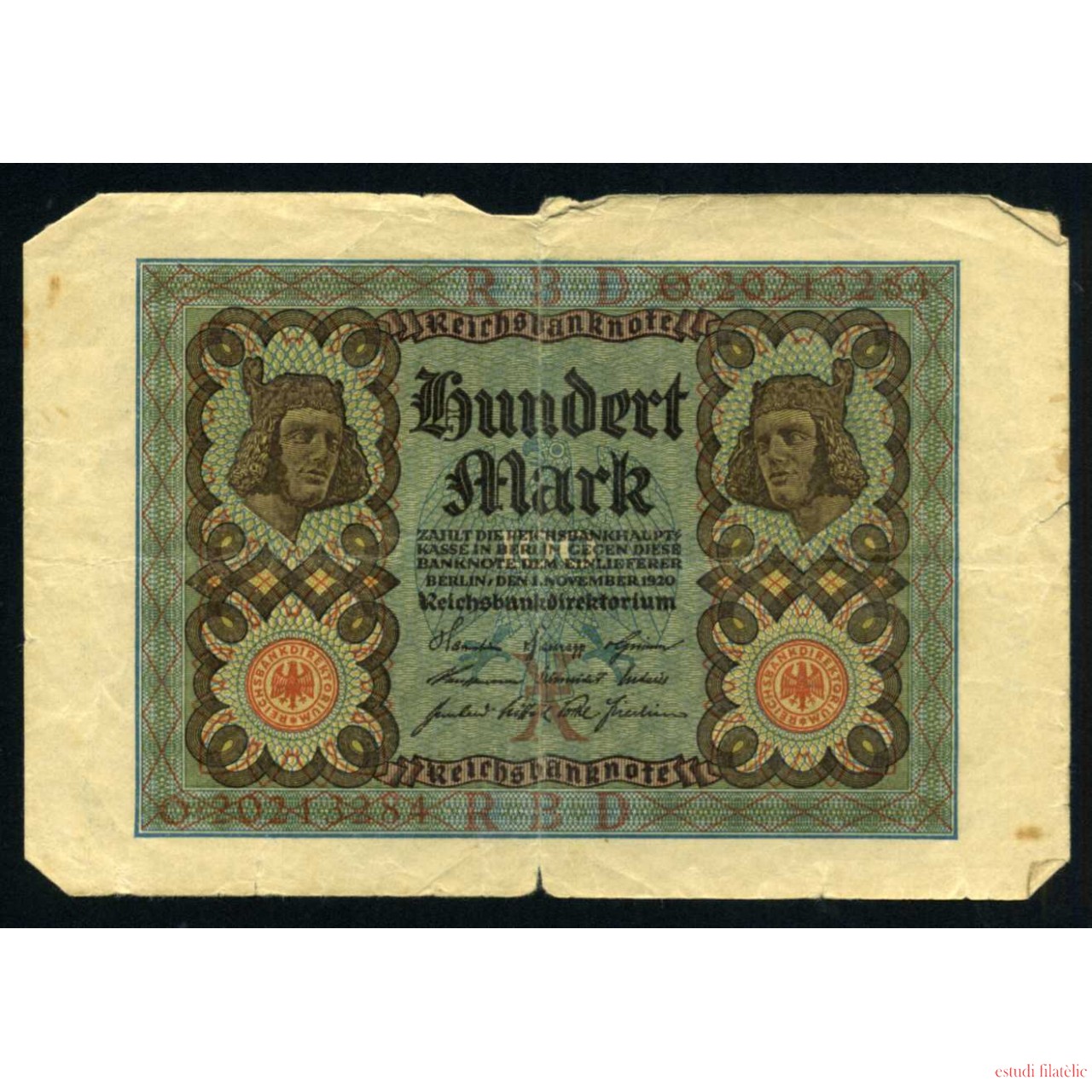 Alemania 100 Marcos 1920 Billete Banknote Circulado Pliegues Roturas Foto estandar