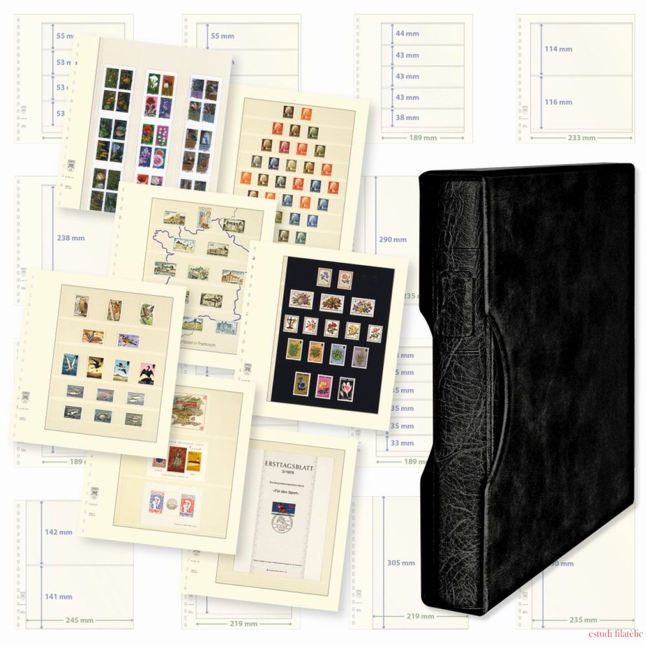 Lindner 1124TB-S Oferta completa: Juego de tapa de anillos REGULAR (1124) color negro, incl. 2 paquetes de hojas T-Blanko de su elección