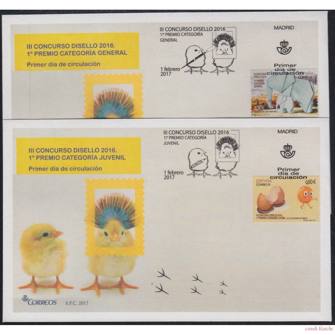 España Spain 5120/21 2017 Disello Categoría Juvenil y General SPD Sobres Primer Día
