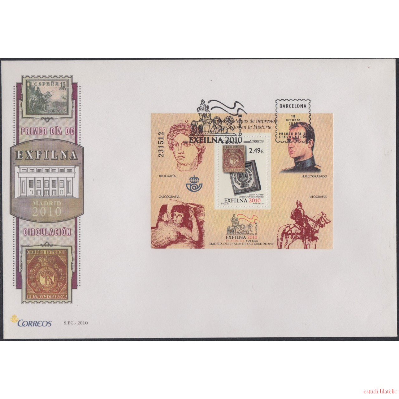 España Spain Nº4607 Año 2010 EXFILNA 2010 Sello Juan Carlos I La Maja desnuda SPD FDC SOBRE PRIMER DIA, foto estándar