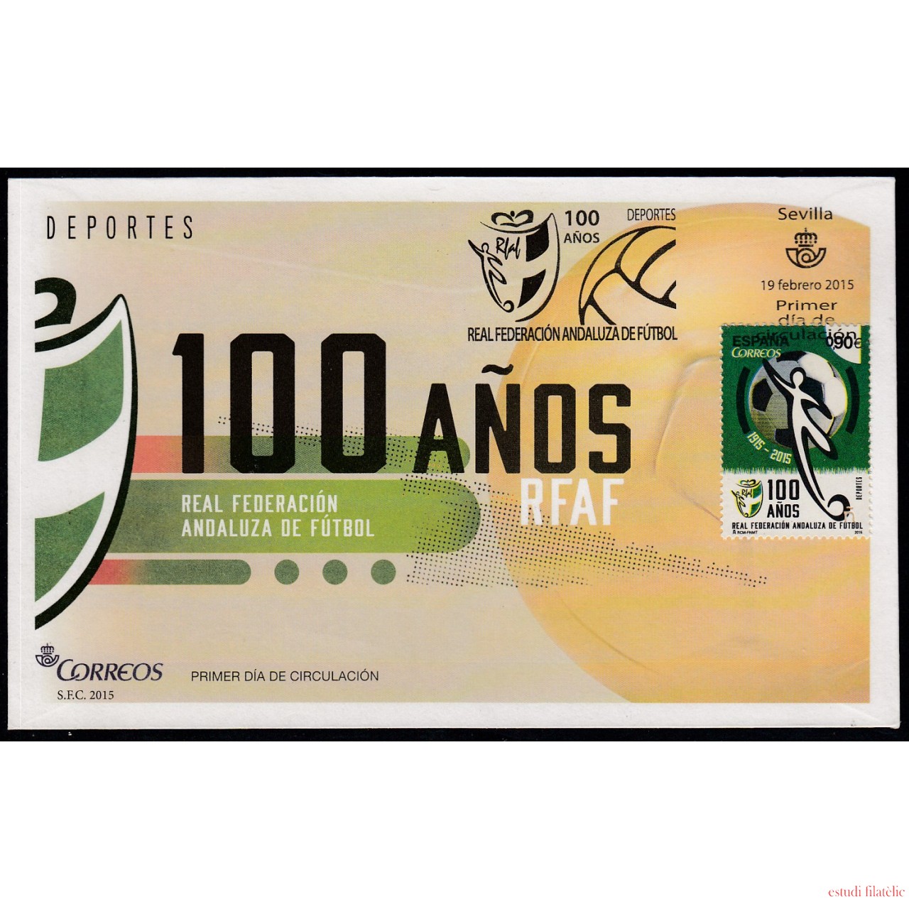 España Spain Nº 4950 2015 Cent. Federación Andaluza Fútbol,Sobres Primer Día,foto estándar