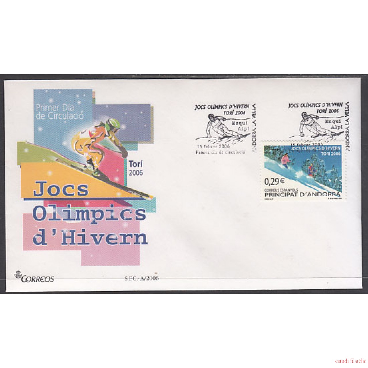 Andorra Española 334 2006 Juegos de Invierno de Turín SPD Sobre Primer día